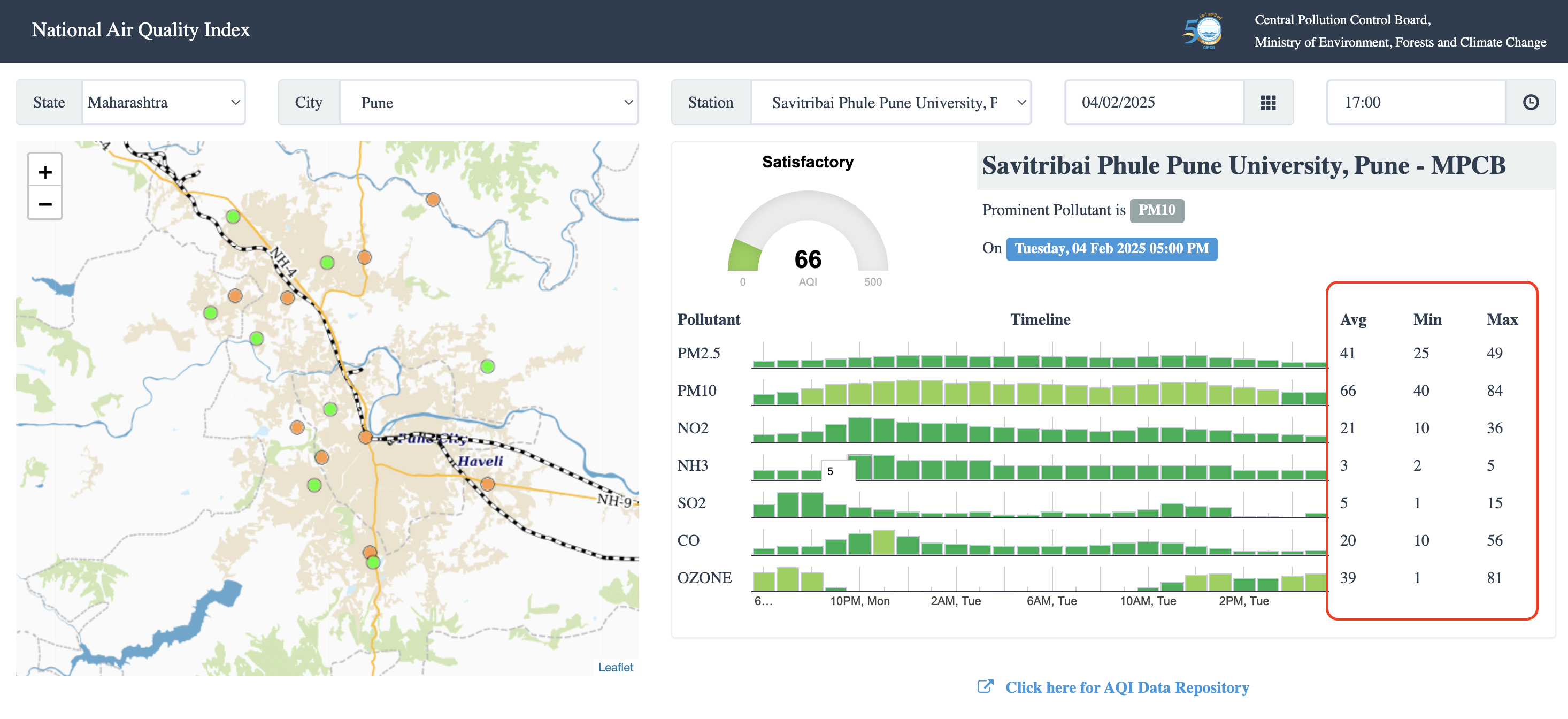AQI is the measure of air quality. Air has multiple pollutants like Particulate Matter (PM2.5 and PM10), Carbon Monoxide, Sulphur Dioxide, Nitrogen Dioxide and Ozone - the concentrations for each of these pollutants are measured individually and then the ‘Individual’ AQI is calculated by interpolation, the worst (highest) of the ‘Individual’ AQI is considered as the common AQI.