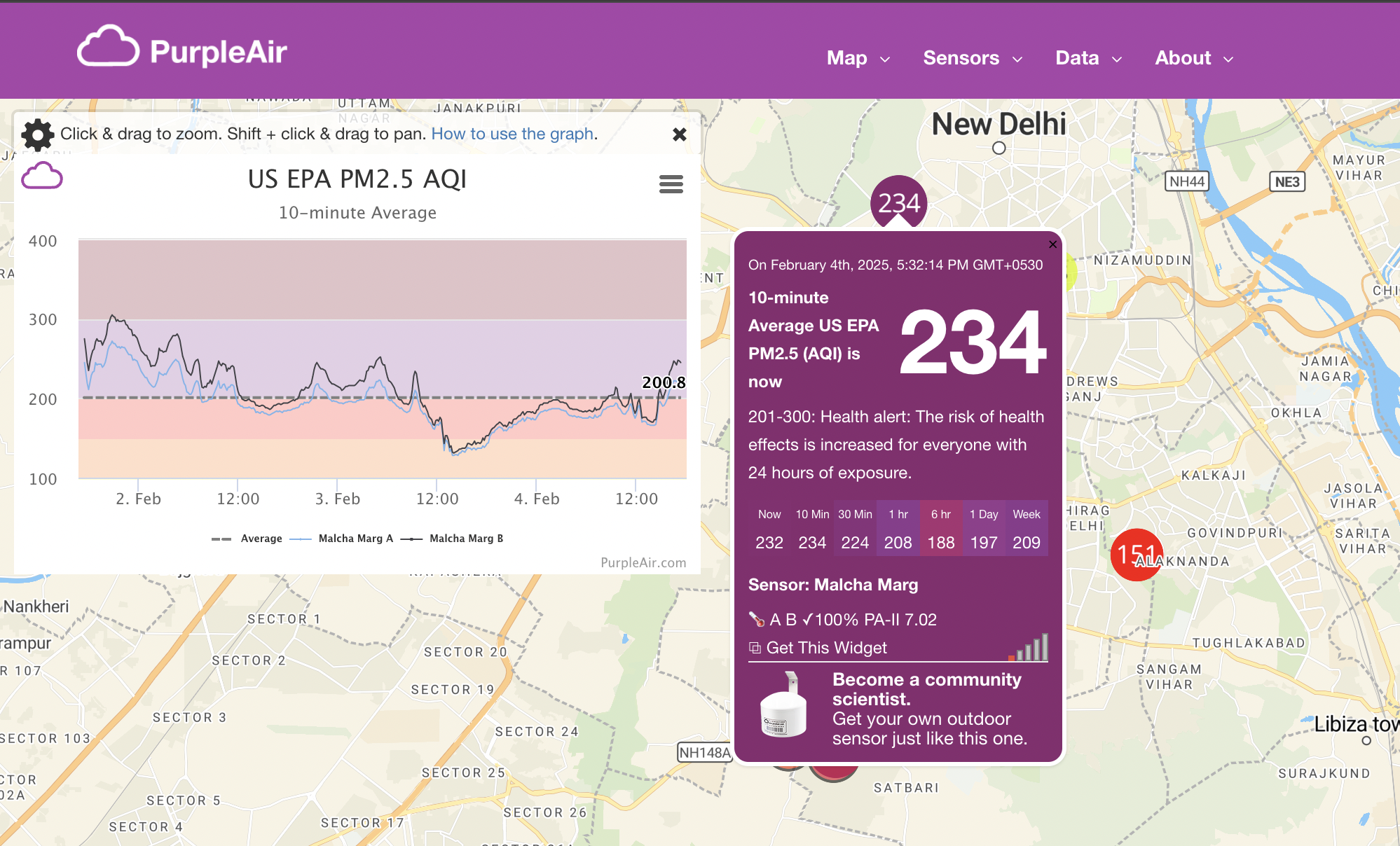 - IoT Devices: For instance PurpleAir sensors can be purchased by individuals where each sensor can act as an individual station. Limitation: Needs work to ensure each device is calibrated with local stations.