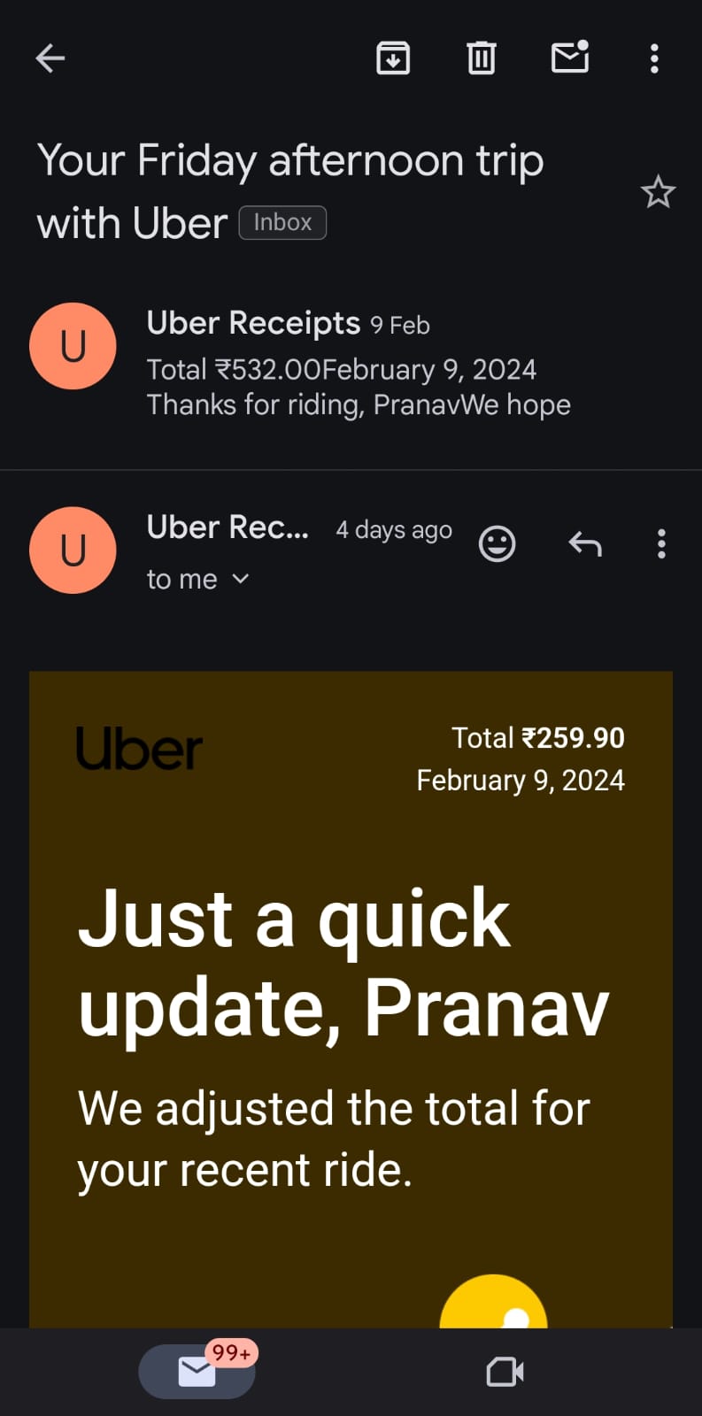 - Uber processed an adjusted refund, but did not mention the same in email subject line, the customer would not have known if they did not click on it.
