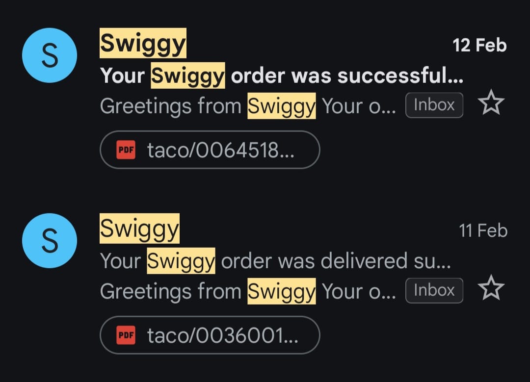 - Swiggy successful orders clearly communicate so in the subject itself