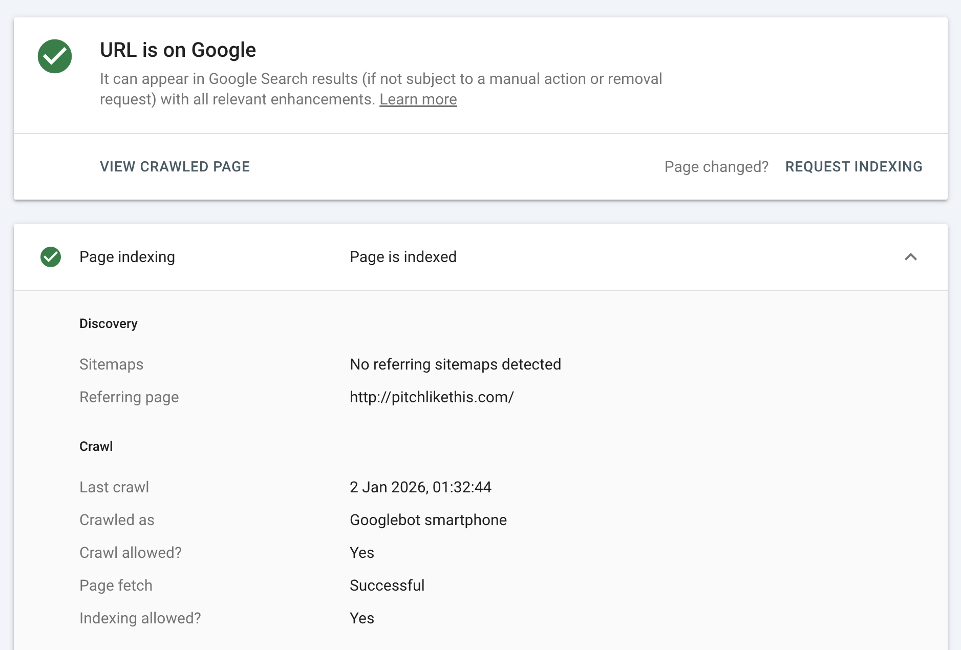 - canonical points another domain → This is happening in my case, I have pitchlikethis.com indexed however www.pitchlikethis.com is my canonical url.
