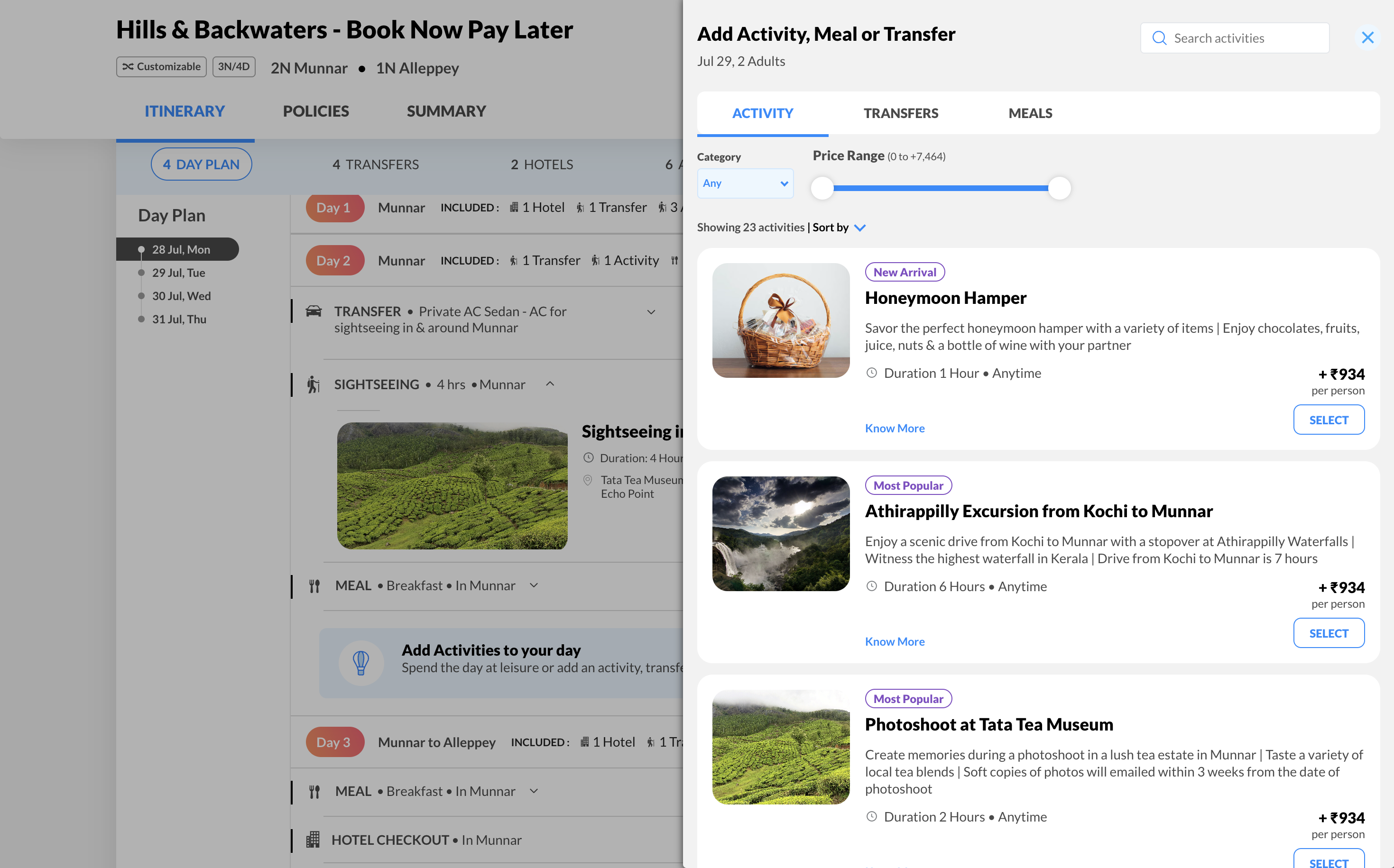 MMT also has Holiday Packages where you can add custom activities in an already planned itinerary.