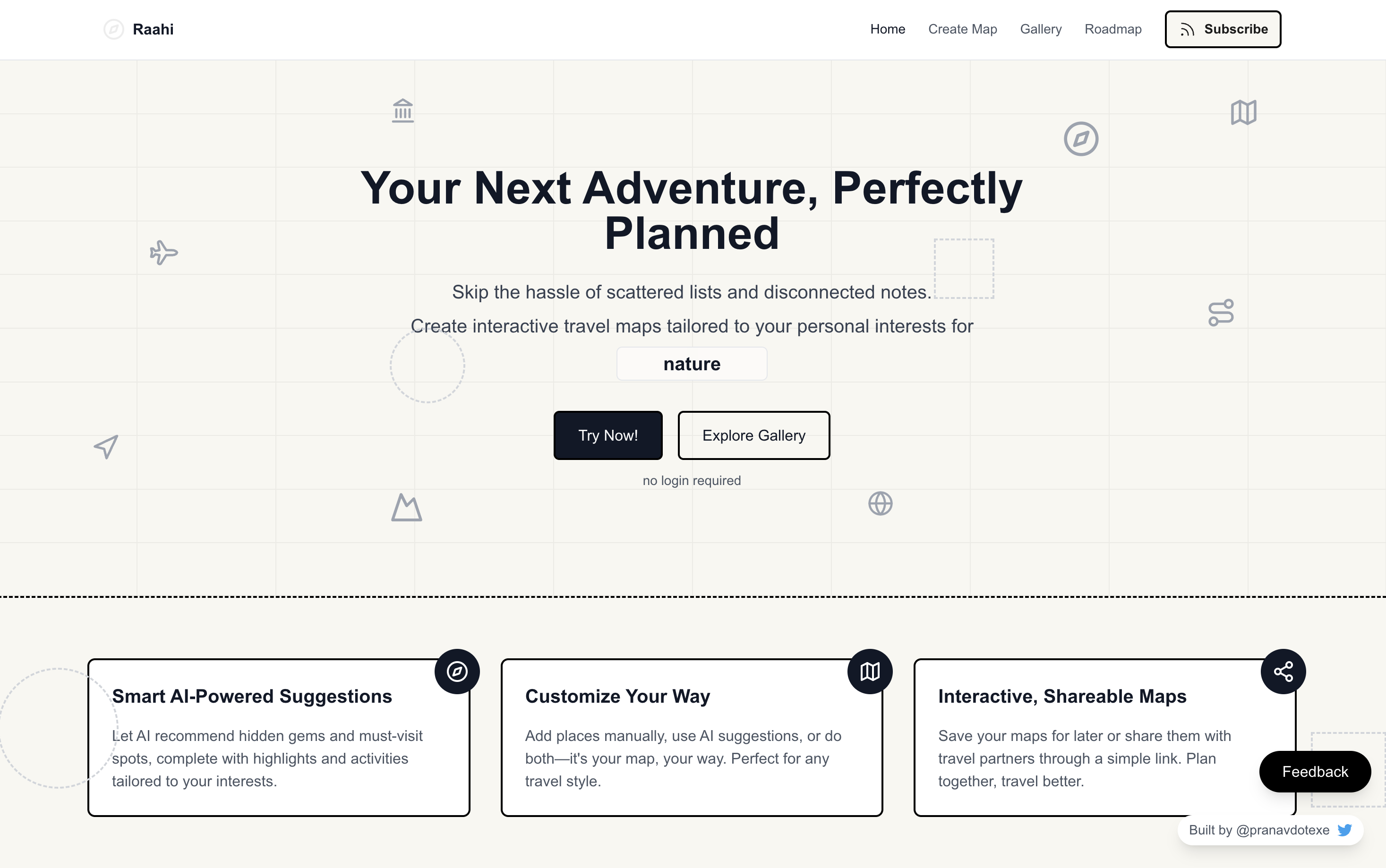 A Map based UI interface for users to generate AI based travel itineraries and share them. URL: https://planmytravel.netlify.app/ Role: Developer