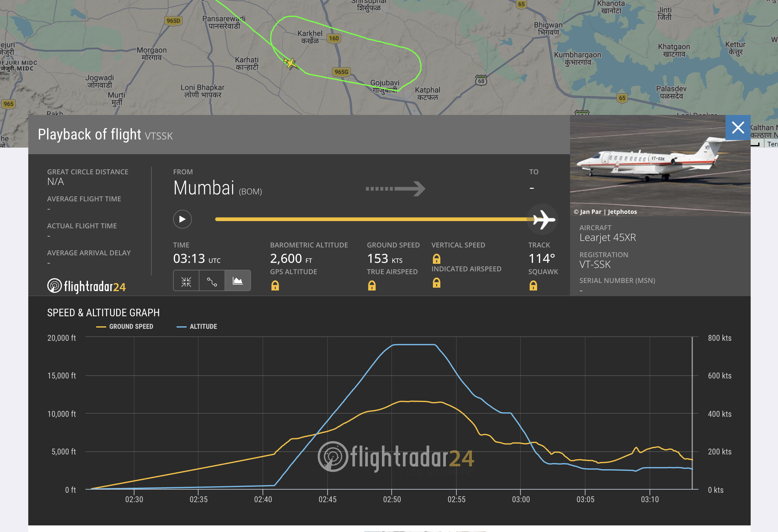 Baramati Airstrip - Image Flightradar24 - VTSSK Sequence of Events - PIB Gov Flightradar24 - Crash Report